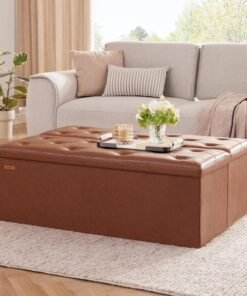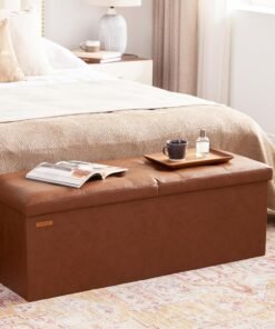 31.5 Inches Ottoman with Storage Bench, Folding Ottoman Bench Small Foot Rest Stool, Bedroom Bench with Flipping Lid, Linen Dark Gray