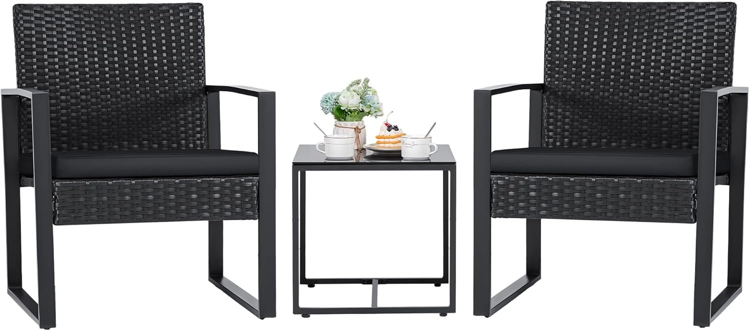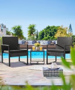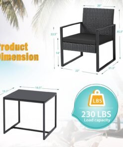 Be the first to review “3 Pieces Patio Set Outdoor Wicker Furniture Sets Modern Rattan Chair Conversation Sets with Coffee Table for Yard and Bistro (Black)” Cancel reply