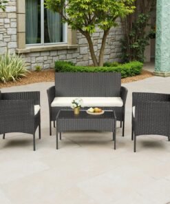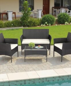 | 4-Piece Patio Furniture Set | Black | Outdoor Wicker Furniture with Coffee Table | Modern Rattan Chairs Conversation Set | Outdoor Seating | Weather-Resistant | for Porch, Garden, Lawn