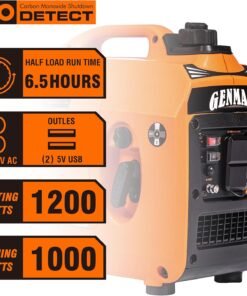 - ??Powerful Engine And Safe For Sensitive Electronics ??The 1200 Starting Watts Inverter Generator is powered by a 57cc 4- stroke OHV gas engine,with inverter technology produce 1200 Starting Watts/ 1000 Running Watts clean power (less than 3% THD), confidently connect your sensitive electronics such as TV, lights, fans, small power tools and more on camping trips, etc.