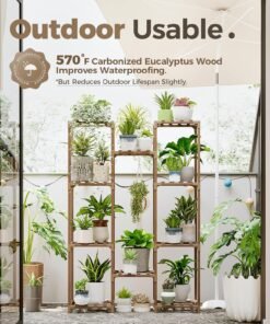 - >10 Pots Large Plant Table: The wooden plant shelf includes 10 shelves, which can hold 11-25 pots of regular size. it can hold a high plant pot plant; Bearing up to 150 pounds, it is recommended to place a heavier flower pot below and a lighter flower pot on the upper layer.